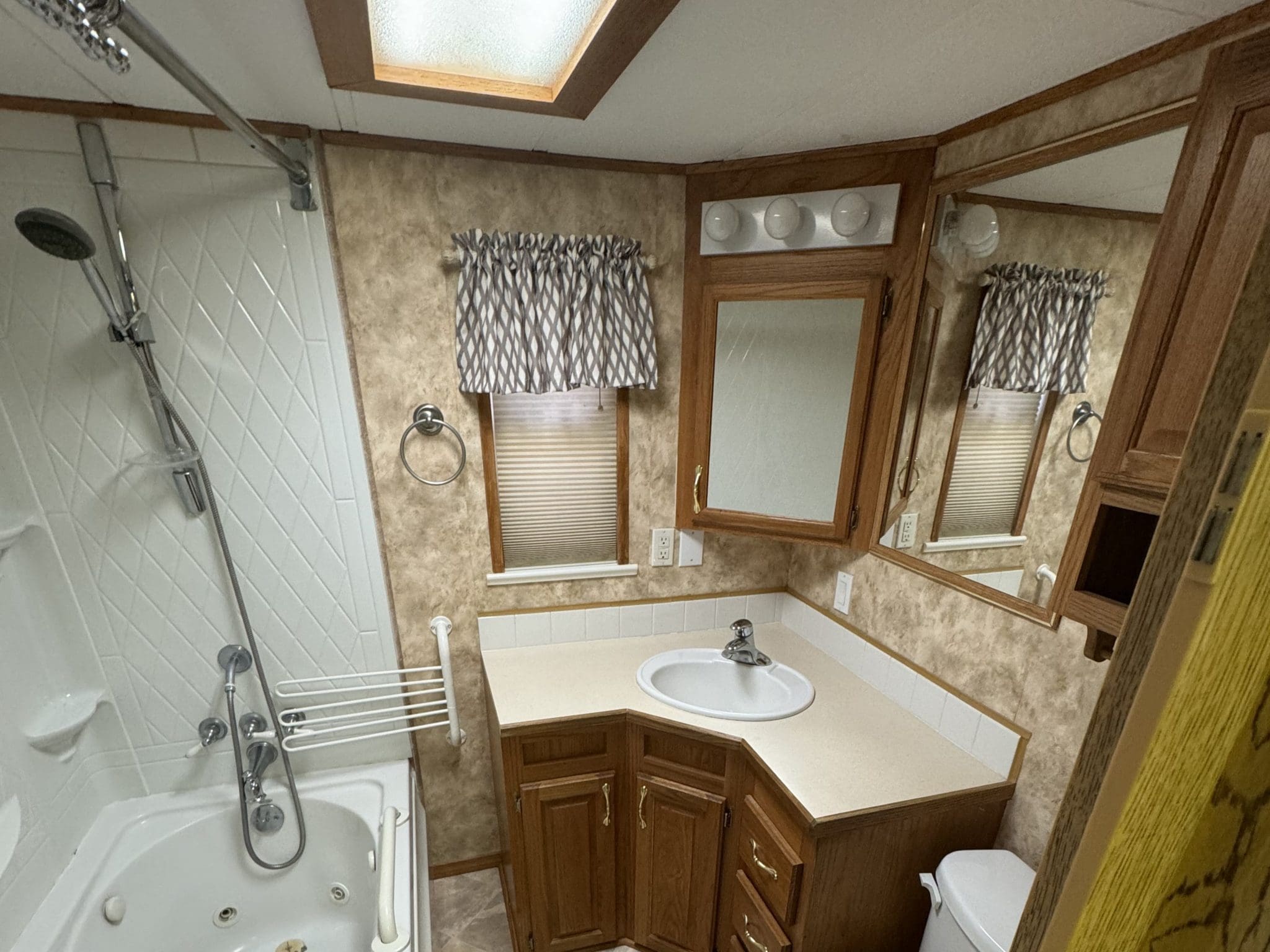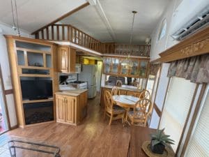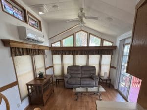 This classy, furnished tiny home with a covered porch has a beautiful mountain view. The multi-level huge loft and California bonus room also provide additional living space.